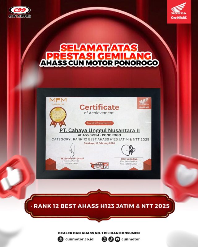- 🏅 Rank 12 Best AHASS H123 Jatim & NTT 2025 (Ponorogo)